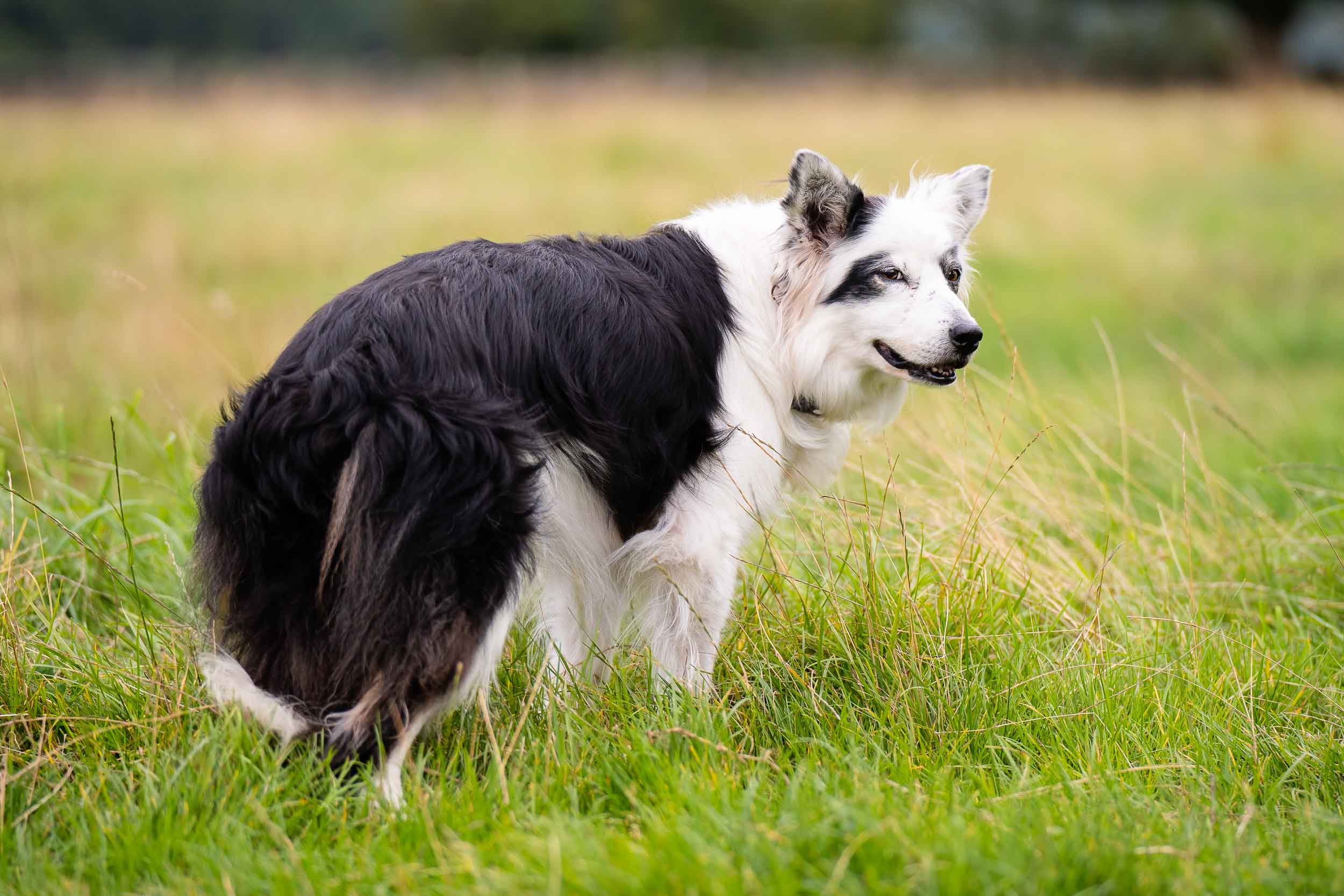 Taking time with an older border collie to capture her youthful soul on a gentle wander through meadows close to her home near Harrogate during a dog photography session.